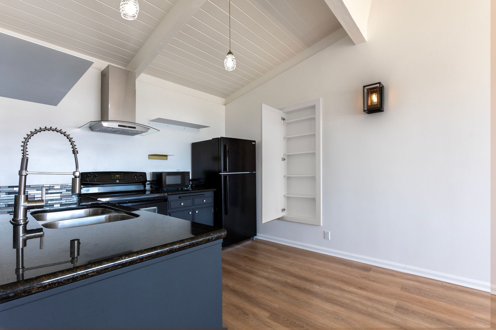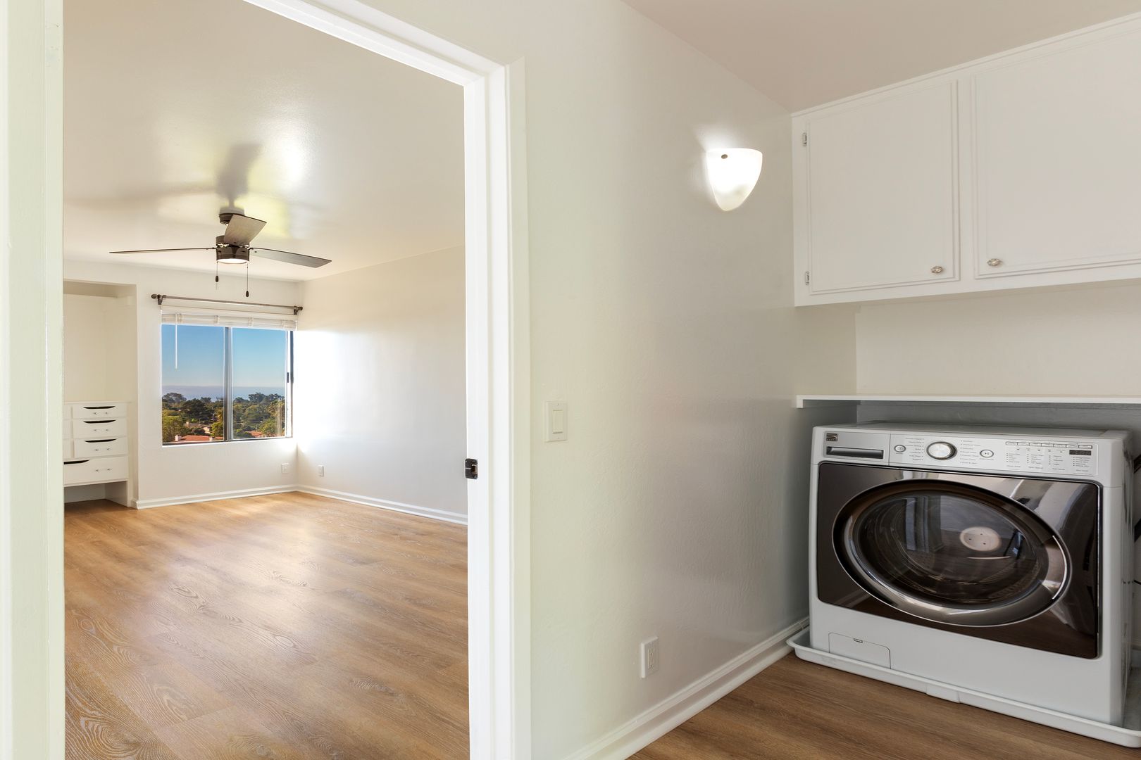 Only 6 blocks to the beach with 180 degree ocean views from the kitchen, living room and bedroom, this apartment invites you to watch sailboats coasting by and even watch for whales from every room in your home. :) You can see more than 50 miles away on a clear day....all the Channel Islands are visible from here. QUIET & PEACEFUL BLUFF TOP LOCATION on a dead end street, yet only 1 block walking to Starbucks, Lazy Acres Organic Grocer, Albertsons, UPS Store, Rite Aid, Longs, great restaurants and Shoreline Park with a neighborhood post office coming soon. A true Santa Barbara Gem, welcome to Paradise! MINUTES TO DOWNTOWN, bus stop, harbor and freeway access. A short 6 blocks to the beach and the Douglas Family Reserve..... the BEST of Santa Barbara is right here!! Immaculate grounds...very clean and serene atmosphere. Be Inspired Everyday You Live In This Special Place..... RENTAL FEATURES : Full Kitchen with Granite counter tops, Laundry on site, 180 Degree Ocean Views, Nice storage, and closet space, Full size refrigerator.